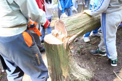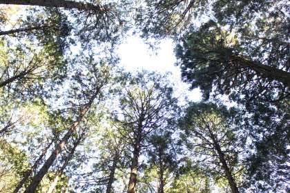 間伐したあとの青空、気持ちの良い日光が入ってきました。