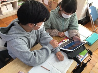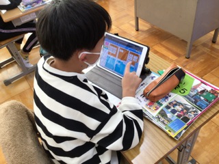身の回りにある工業製品についてみんなで話し合いました。学習用タブレットを使って、みんなが見つけた工業製品を仲間分けしました。みんな、真剣に考えていました。