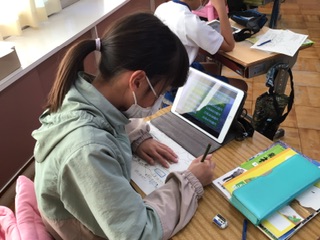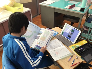日本の工業生産の特徴について学習しています。教科書や資料集のデータを読み取り、分かることをまとめました。また、工業地帯の特徴を調べるために、NHK for schoolを使って調べています。自主的に図書室から本を借りてくる子もいます。空いている時間や家庭学習の時間を活用して、学びを深めています。