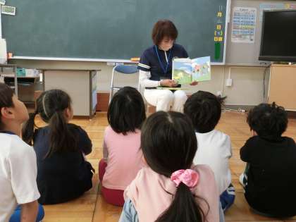 今年度から再開した「読み語り」。月に一回、ボランティアさんが来てくださる日を、子どもたちはとても楽しみにしています。