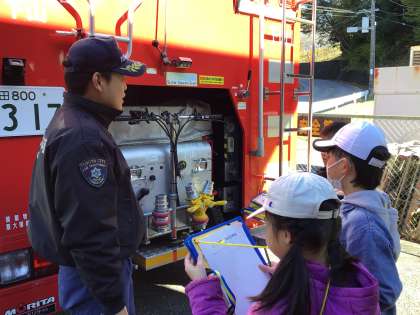 14日(火)に3年生が社会の学習で、下山出張所へ見学に行きました。現場にいち早く駆け付ける工夫や、消防自動車や救急車の秘密をたくさん学びました。下山出張所のみなさん、ご協力いただきありがとうございました。