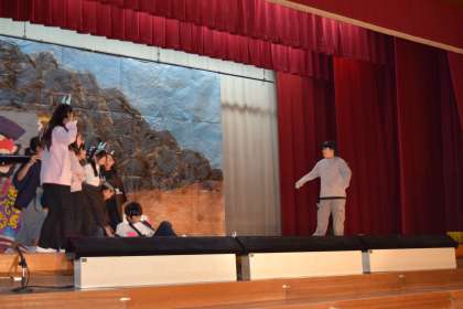 12月2日(土)に、5・6年生が学芸会で「桃次郎の冒険」を演じました。分かり合うためにはどうするべきかを、お客さんに伝えるために精一杯演じることができました。