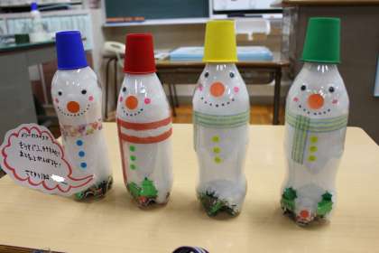 もうすぐクリスマス!ささゆり学級みんなでペットボトルを使って冬らしく雪だるまを作りました!全学級にも配り、冬休みの準備も万端!あと1週間、花山っ子みんなで頑張るぞー!