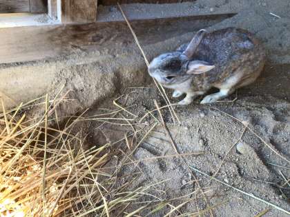 花山小のアイドル「バニちゃん」がもりもり藁を食べています。この藁は5年生が総合の学習で育てたバケツ稲を乾燥させたものです。いっぱい食べて寒い冬を元気に過ごしてね!