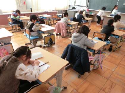 冬休み明け一発目の行事は、全校で行う書き初め大会でした。どの子も真剣な表情で、一画ずつ丁寧に書く様子が立派でした!