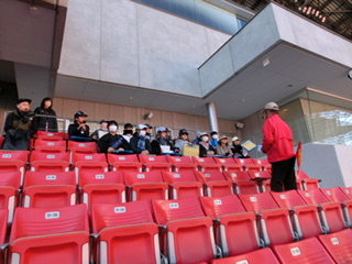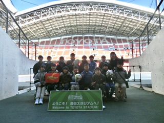 午後は、豊田スタジアムの施設見学を行いました。天候もよかったので、みんなで外でお弁当を食べました。豊田スタジアムに初めて来たという子もおり、とても楽しく見学することができました。