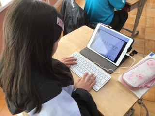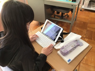 家庭科も、残すところミシンの学習だけになりました。そこで、これまで学習した手縫いや調理、物やお金の使い方や快適な暮らしについての復習を学習用タブレットを使って行いました。5年生になってから続けているタイピング練習の力も存分に発揮されています。タイピング速度も上がっています。
