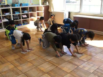 教室のワックスがけのためにみんなで大掃除をしました。「次に使う2年生のためにきれいにしたい!」と、みんなで協力して机を運んだり、床の水拭きをしたりしました。教室がぴかぴかになり、ワックスをかけることができました。みんなの気持ちが素晴らしかったです。また、先週は廊下のワックスがけのために、ランチルームに残っていた2年生が廊下の水拭きをしてくれました。ありがとう!