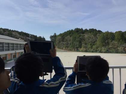 理科では、天気の変化について学習しています。毎日同じ場所から観察すると「今日は雲が薄いな」「あれは、すじ雲かな?」と発見があります。タブレットで写真を撮り、じっくり観察しました。