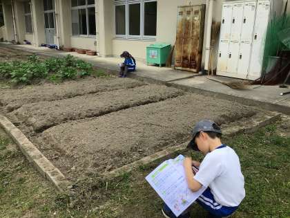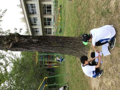 4月26日(金)の5時間目に、理科の学習で「一年間通して観察する木」を決めて、観察をしました。これから、夏、秋、冬と季節が変わっていくと、今日観察した木の様子がどう変わっていくか楽しみです。