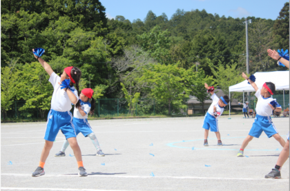 1・2年表現の様子です。昭和バブリーのテーマのもと、可愛らしく元気いっぱい踊りました。