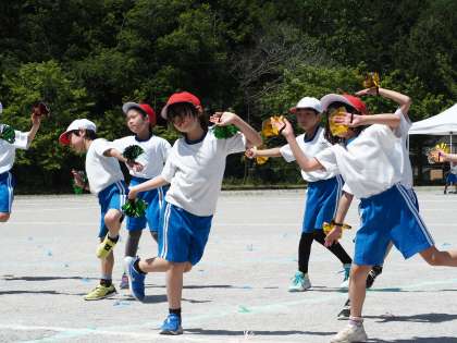 3・4年表現の様子です。明るく元気いっぱいおいでんを踊りました。
