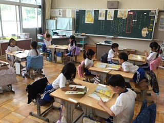 ねずみともぐらが登場するお話の学習をしています。とんこととんと床や天井をたたく動物の気持ちを話し合い、想像しながら音読をしました。また、発表するときは、「なぜかというと」や「〜だからです」など、分かりやすく話す方法も学んでいます。