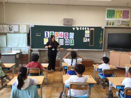 5月17日(金)にALTの先生といっしょに外国語の学習をしました。1〜12までの数字を発音しながら覚えたり、1〜12の数を使って、ビンゴゲームをしたりしました。子どもたちは、とても元気に楽しく学習しました。