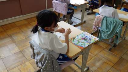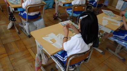図画工作科「はさみでアート」の単元で、はさみを上手に使い、いろいろな動物や植物や乗り物やかざり、もようを切りとりました。何をつくるかを意識しながらいろいろな形をきりとることで、はさみの使い方も上手になりました。来週は、その巧みな指つかいで、素敵な作品をつくることを楽しみにしています。