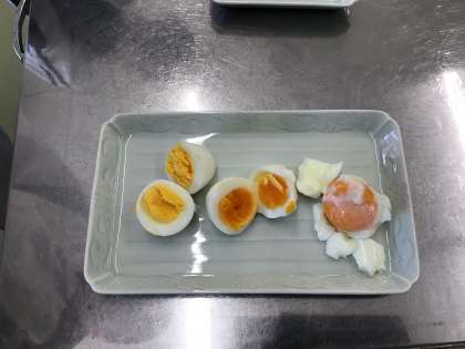 家庭科では、ゆでる練習としてゆで卵作りに挑戦しました。ゆで時間を変えると、卵の固まり具合が変わるのか、とめあてを立て、実践しました。3分は今にも黄身がとろけそうなトロトロで、10分はパサパサするほど固まっていました。結果も無事に分かり、安全第一でゆでる練習ができてよかったです。