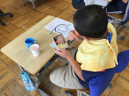 ささゆり学級で10日の月曜日に養護教諭の先生と一緒に歯の染め出しを行いました!