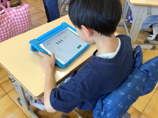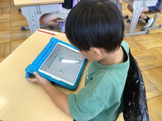 授業で学習用タブレットを使うことが増えてきました。たし算やひき算の考え方を説明する目的に加えて、Qubenaを使って様々な問題に取り組んでいます。