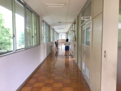 月曜、水曜、金曜は「むくろじ班」で清掃をしています。長い廊下を2人でモップがけしている様子です。みんなで協力して、学校をきれいにする姿がとても素敵です。
