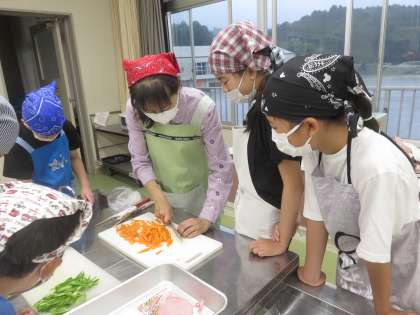 7月1日、3人の保護者ボランティアの方々のご協力のもと、家庭科の学習で野菜炒めを作りました。それぞれ担当の野菜を切り、交代しながら野菜を炒めました。味もよく、彩りもきれいな野菜炒めを作ることができました。