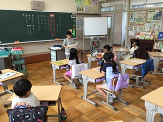 国語で、夏休みの出来事をみんなに伝える学習をしました。どんな思い出を話そうか、話したいことがたくさんあって、決めるのに一苦労でした。どんな出来事かを詳しく話したり、どんな気持ちになっか話したり、みんなに伝わるように一生懸命練習して話しました。友達だちの話に質問や感想を言う子がたくさんで、とても盛り上がりました。