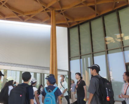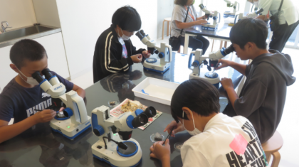 9月6日(金)に、花山小・大沼小・巴ケ丘小の3校合同で豊田市博物館・美術館に行きました。4月にオープンしたばかりの博物館は、とてもきれいで、豊田市の木材を使っている柱からは、スギの香りがしました。実験室では、なんと「花沢町」の花こう岩を顕微鏡で観察し、石英や雲母等を仕分けしました。美術館ではクリムトの絵を見て気付いたことを話し合いました。たいへん充実した1日となりました。準備の方、ありがとうございました。