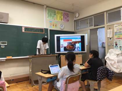 家庭科の学習で、我が家のとっておきみそ汁を作り、みんなに紹介しました。「旬のさつまいもを入れました」「家族がみんな好きなわかめとねぎを入れました」など、家族のために習った手順でみそ汁を作りました。家族からも「おいしい!」と大好評でした♪これからもいろんなみそ汁を作ってほしいですね!