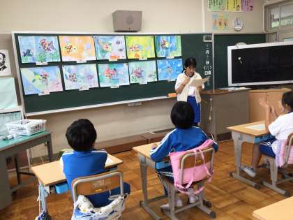 読書感想画がついに完成しました。最後はみんなで鑑賞会をし、「どんな思いで描いたのか」「工夫したところ」など伝え、作品への理解を深めることができました。どの作品も、にじうおのやさしさが伝わる温かい作品となりました。