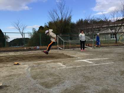 体育の学習で、幅跳びに挑戦しました。助走、踏切、空中姿勢、着地のそれぞれのポイントを意識し、最後には多くの子が目標を超える測定値になりました。とてもかっこよかったです!