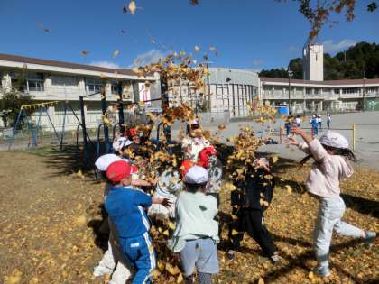 生活科で「あきだいすき」の学習をしました。校庭の植物を観察し、葉っぱや枯れ葉、木の実や花などについて学びました。みんなで楽しい秋の遊びを考えて楽しく活動しました。学校にある大きなイチョウの木の下で、イチョウの葉を使って楽しく遊びました。紅葉が例年よりも遅かったため、やっと秋の学習が終わりました。次は、冬の学習が始まっています。