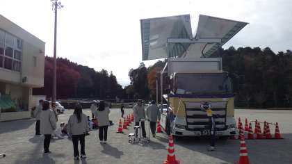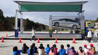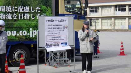 12月11日(水)の3時間目に、トヨタ輸送の方々が、交通安全教室を催してくださりました。いろいろな体験活動(1積載車の運転席への乗車体験 2積載車への積み込み作業