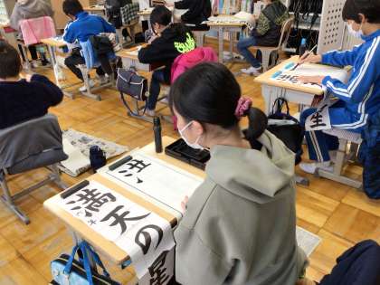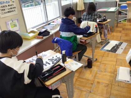 全員が揃って書き初め大会を行うことができました。習ったことを生かして、丁寧に書くことができました。