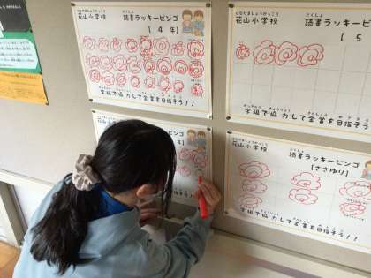 いろいろな本を借りて読むことができるように、図書委員会がラッキービンゴを企画してくれました。ビンゴが揃うように、いろいろな種類の本を読んでいました。たくさんのビンゴが集まりました♪