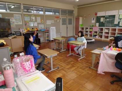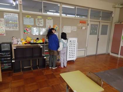 朝の会が始まると、席に着いて背筋を伸ばして座って待ちます。朝の健康観察は、名前を呼ばれると、「ハイ、元気です!」と笑顔で手を挙げて答えます。今度は、教頭先生に、「教頭先生、元気ですか?」と質問します。今日の給食のメニューを教頭先生と一緒に確認をします。朝の会はまさに「元気の源」です!
