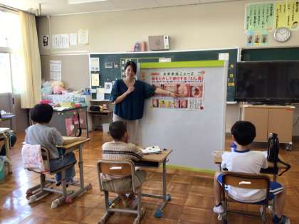 6月18日(水)養護教諭による歯の染め出しと歯科指導がありました。歯磨きやうがいの大切さを改めて学びました。