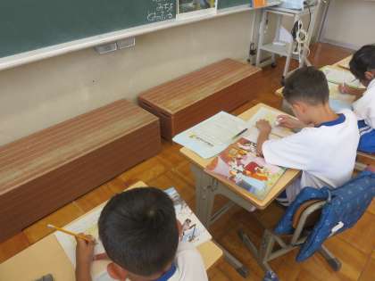7月14日・15日の2日間、サポート学習として詩・作文を書く時間を取りました。詩は各学年で行い、作文は生活作文と読書感想文に分かれて1・2年合同で行いました。原稿用紙2枚も書くのは大変でしたが、みんなよく頑張りました。夏休みの他の宿題も頑張りましょう!