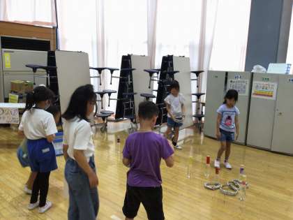 7月17日(木)の5時間目に、4年生と1年生で夏祭りを行いました。わなげ屋さんや千本つり屋さんなど楽しいお店がたくさん並びました。お店屋さんになったり、お客さんになったりして、思いっきり楽しみました!