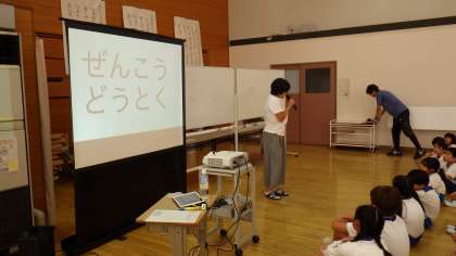 最後に、全校の子どもたちの前で発表しました。人の前で話すよい経験になりました。スモールステップで自信をつけていきたいですね。