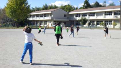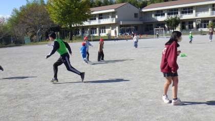 お昼の「むくろじタイム」に、いろいろな学年が運動場に集まり、鬼ごっこをしています。先生が、リーダーシップをとって、子どもたちをまとめ、楽しそうに運動場を駆け回っています。花山っ子同士の絆が深まっており、素敵な時間を過ごしています!