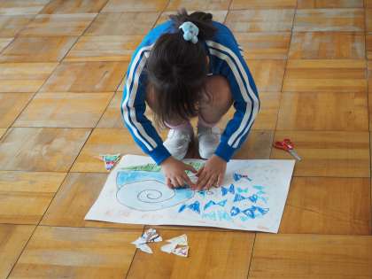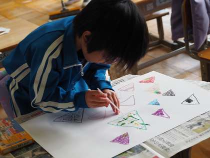 図工の授業で進めていた読書感想画が完成しました。かたつむりの甲羅から出ているとげを思い思いに描き、とっておきのかたつむりが出来上がりました。どの子の作品もとってもすてきです!