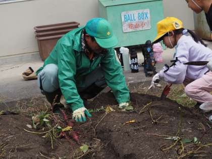 5月に苗を植えたさつまいもを、みんなで掘りました。公務手さん、校内整備員の方もお手伝いをしてくださり、みんなで楽しくいもほりしました。たくさんのさつまいもを収穫することができ、大満足の様子でした。このさつまいもを使って、12月にスイートポテトパーティーをしたいと思います。
