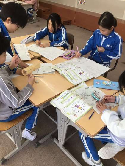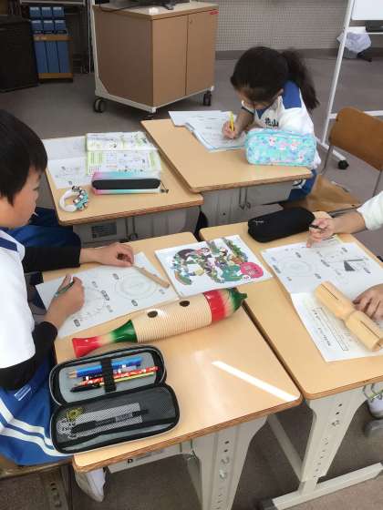音楽科「クロックミュージック」では、4〜5人の組になり、“30秒間の音楽”を作ります。一人ずつ担当する楽器を決め、次に、それぞれの組で決めたタイトルに合わせてメンバーで話し合い、音の響きや強弱などの組み合わせを工夫しています。どんな“30秒間の音楽”が作り上がるのか。発表会が楽しみです。