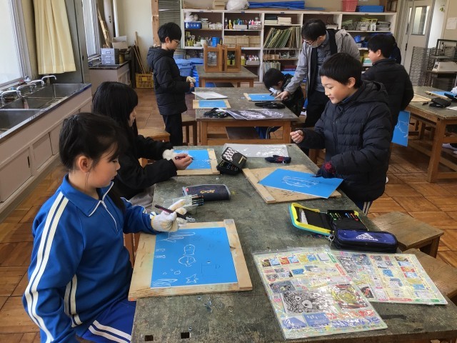 1月27日(火)の図工の授業で彫刻刀を使いました。けがに気を付けながら、安全に取り組むことができました!