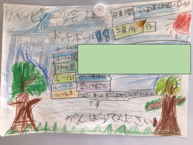 2月2日(月)のむくろじタイムに、ハッピー会社の二人が企画したドッジボールをしました。クラス全員が楽しめるようにチーム分けやルールの内容などを工夫し、しっかりと準備してくれました。二人のおかげで笑顔いっぱいの楽しい時間になりました。ありがとう!