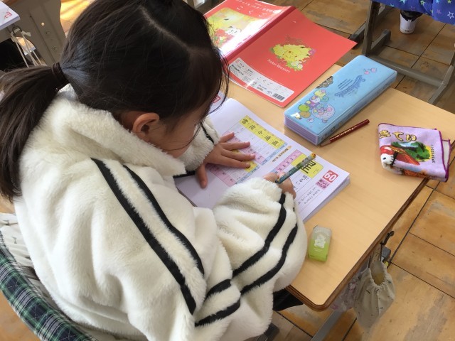 今日、2年生で習う最後の漢字を学習しました。最後の漢字は「星」。良い姿勢で丁寧に漢字を書くことができました。