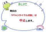 明日、6月3日(土)に予定されていた「PTAリサイクル活動」は、道路状況、グラン...