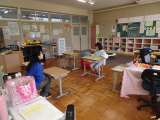 家庭科の学習で、ランチョンマットを作成しました。大きな布を2人で協力して裁ち、...