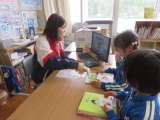 司書の先生に図書室の使い方を教えていただきました。読み聞かせもしていただき、最...