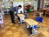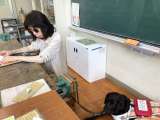 図工で、紙コップを使った工作の学習をしました。紙コップを切って、口のようにぱく...