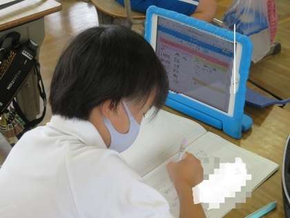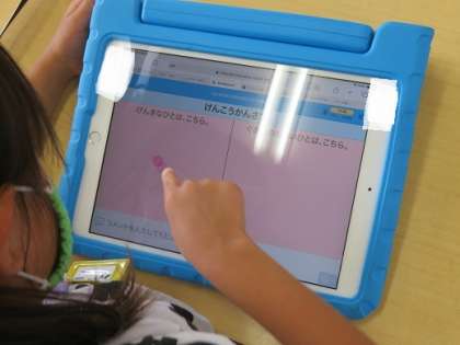 朝の会や授業で、タブレットを使っています。